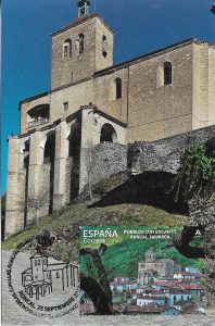 Con este motivo se ha confeccionado una bonita tarjeta máxima de la Iglesia de San Estaban cancelada con el matasellos especial de primer día utilizado en Roncal.