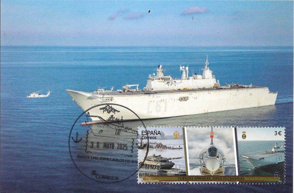 El día 30 de mayo de 2025, con motivo de la celebración del Día de las Fuerzas Armadas, Correos, puso en circulación un sello en el que entre otras imágenes, aparece al portaaviones Juan Carlos I.